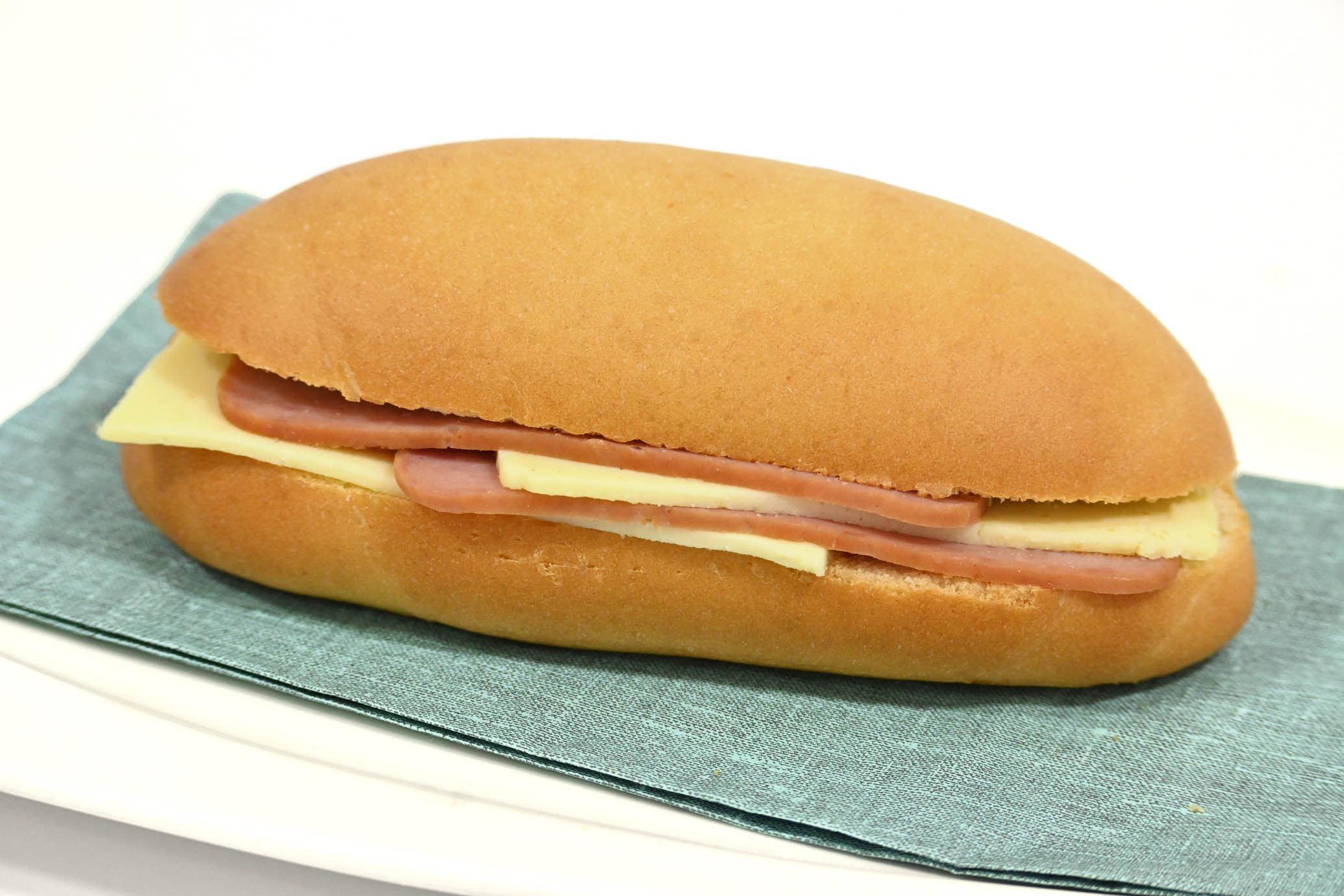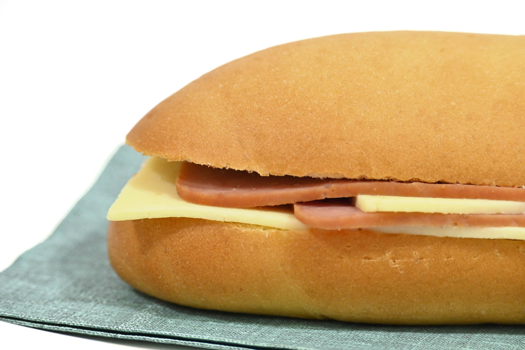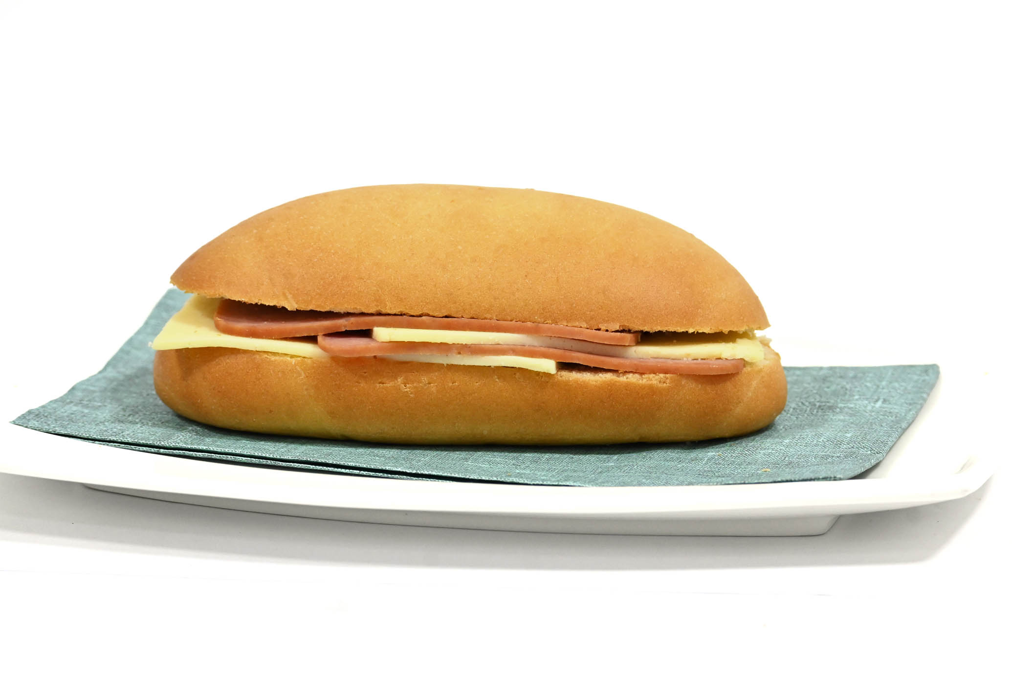Pan artesanal con tajadas de jamón de cerdo y tajadas de queso blanco