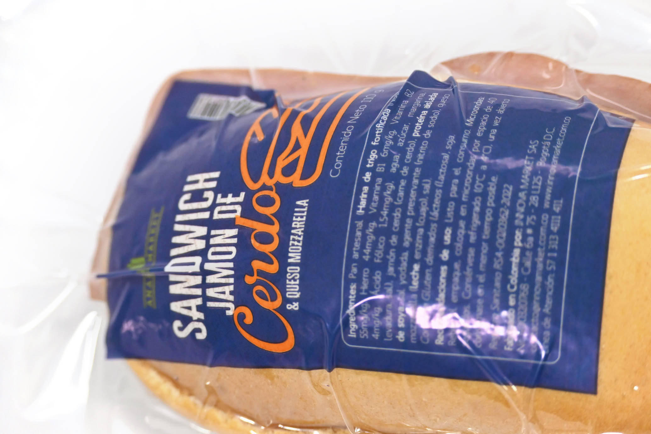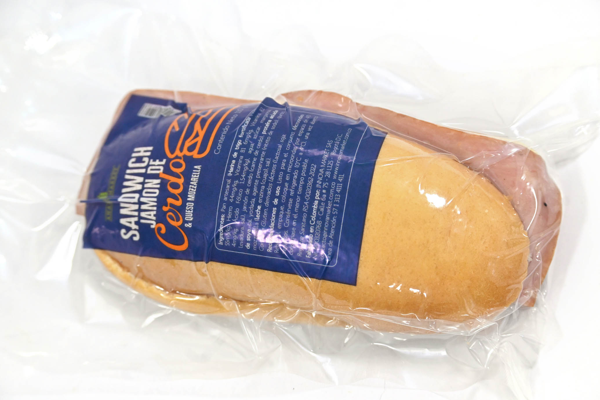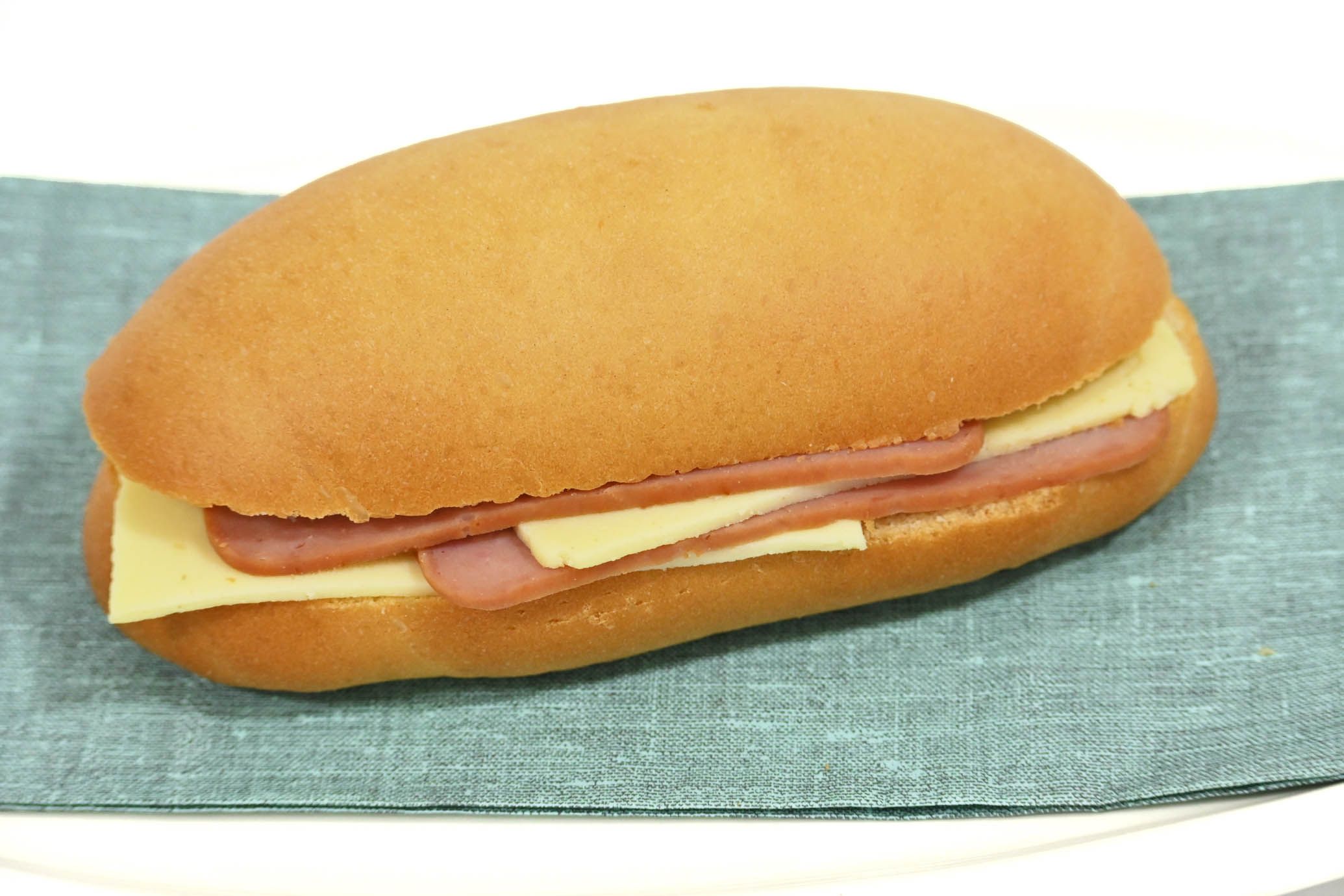 Pan artesanal con tajadas de jamón de cerdo y tajadas de queso blanco