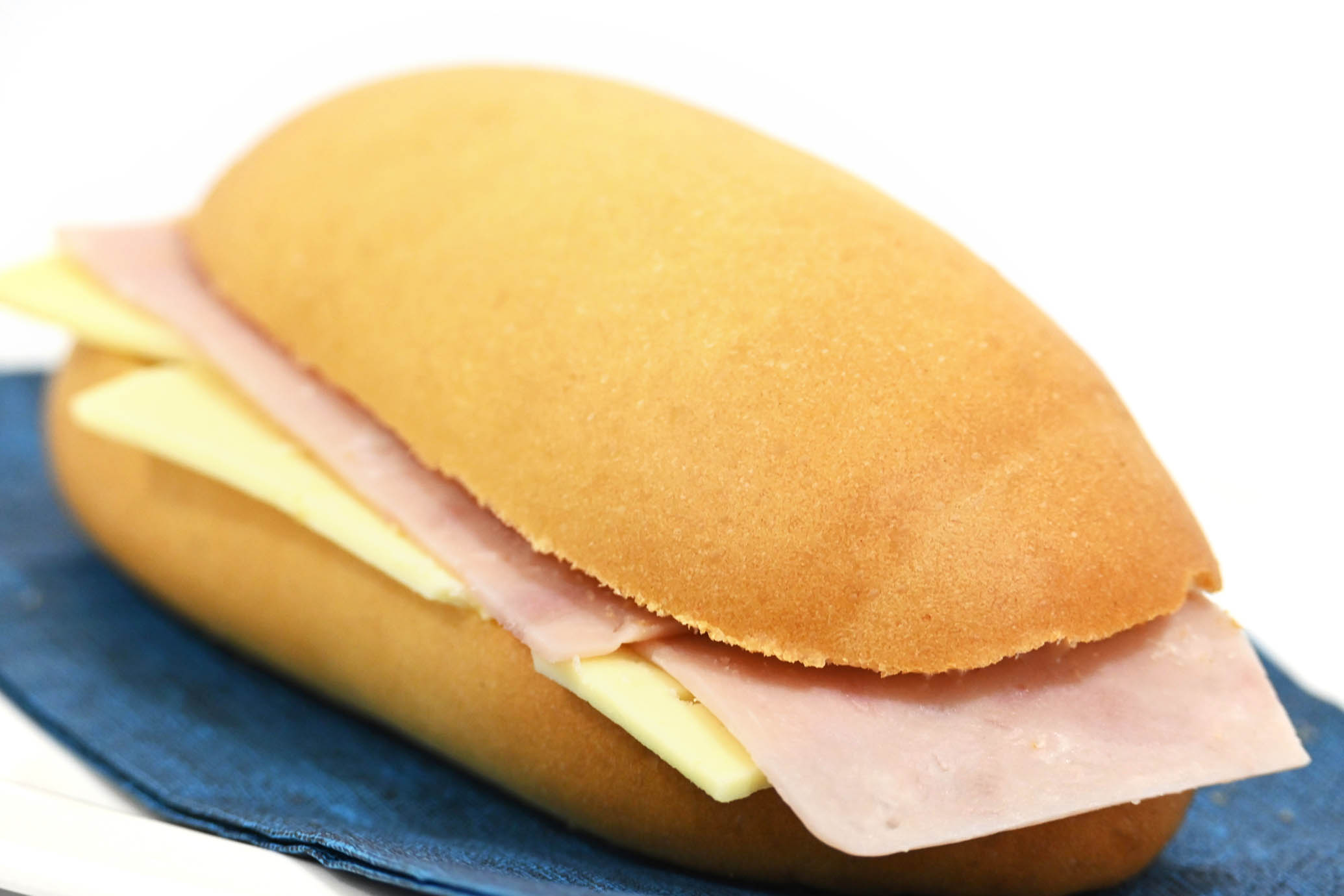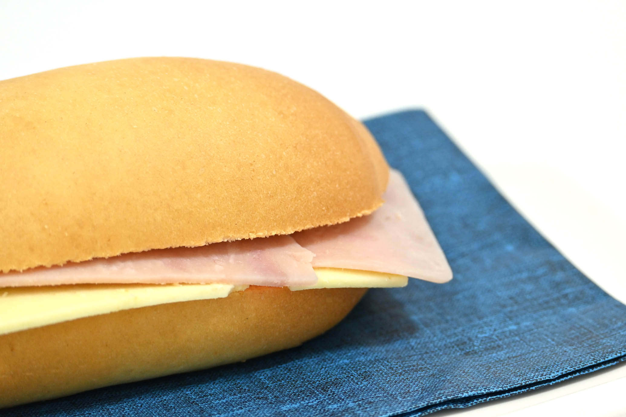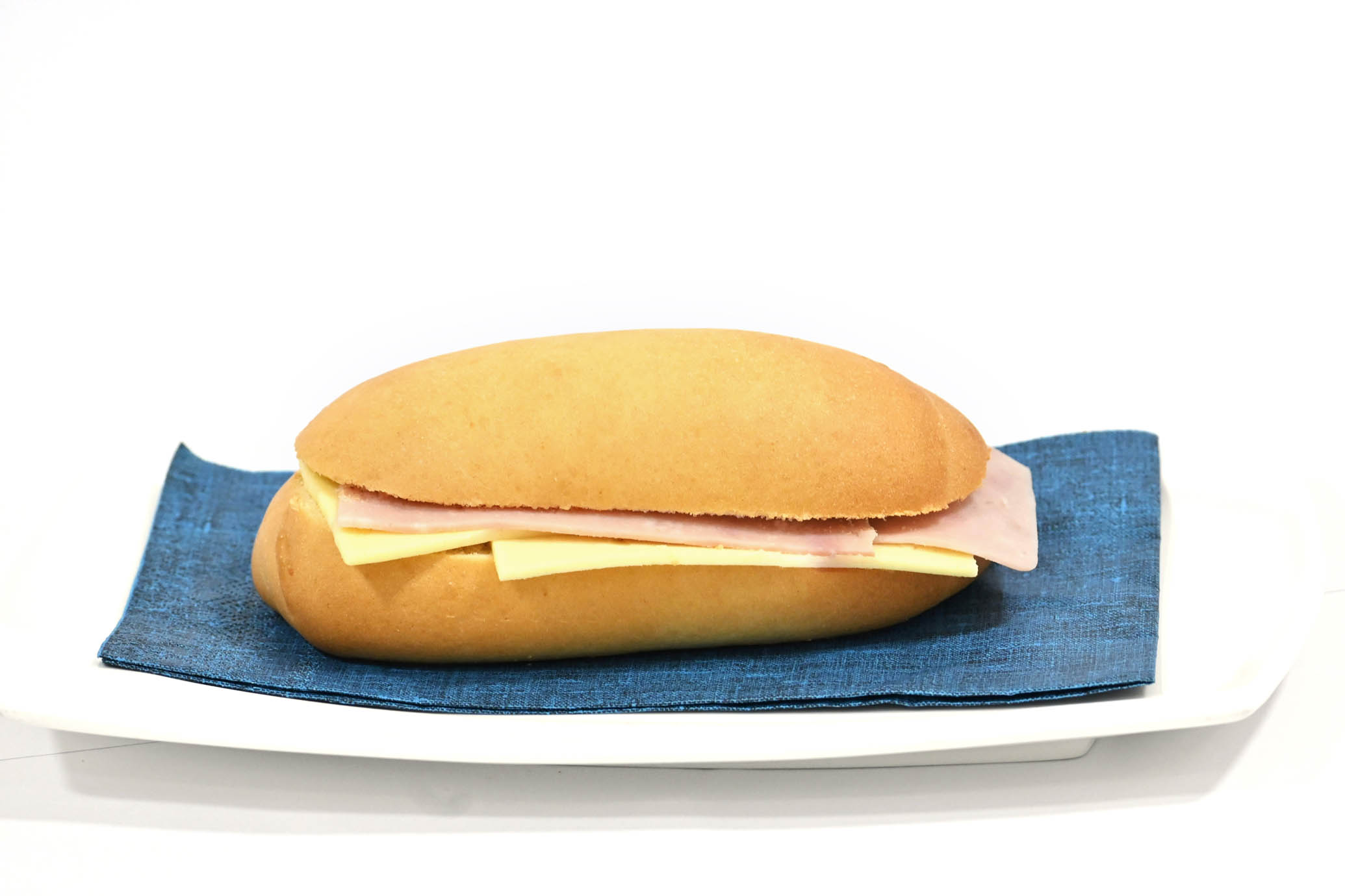 Pan artesanal con tajadas de jamón de pollo y tajadas de queso blanco